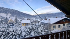 oraz balkon z widokiem na górę Klimczok.